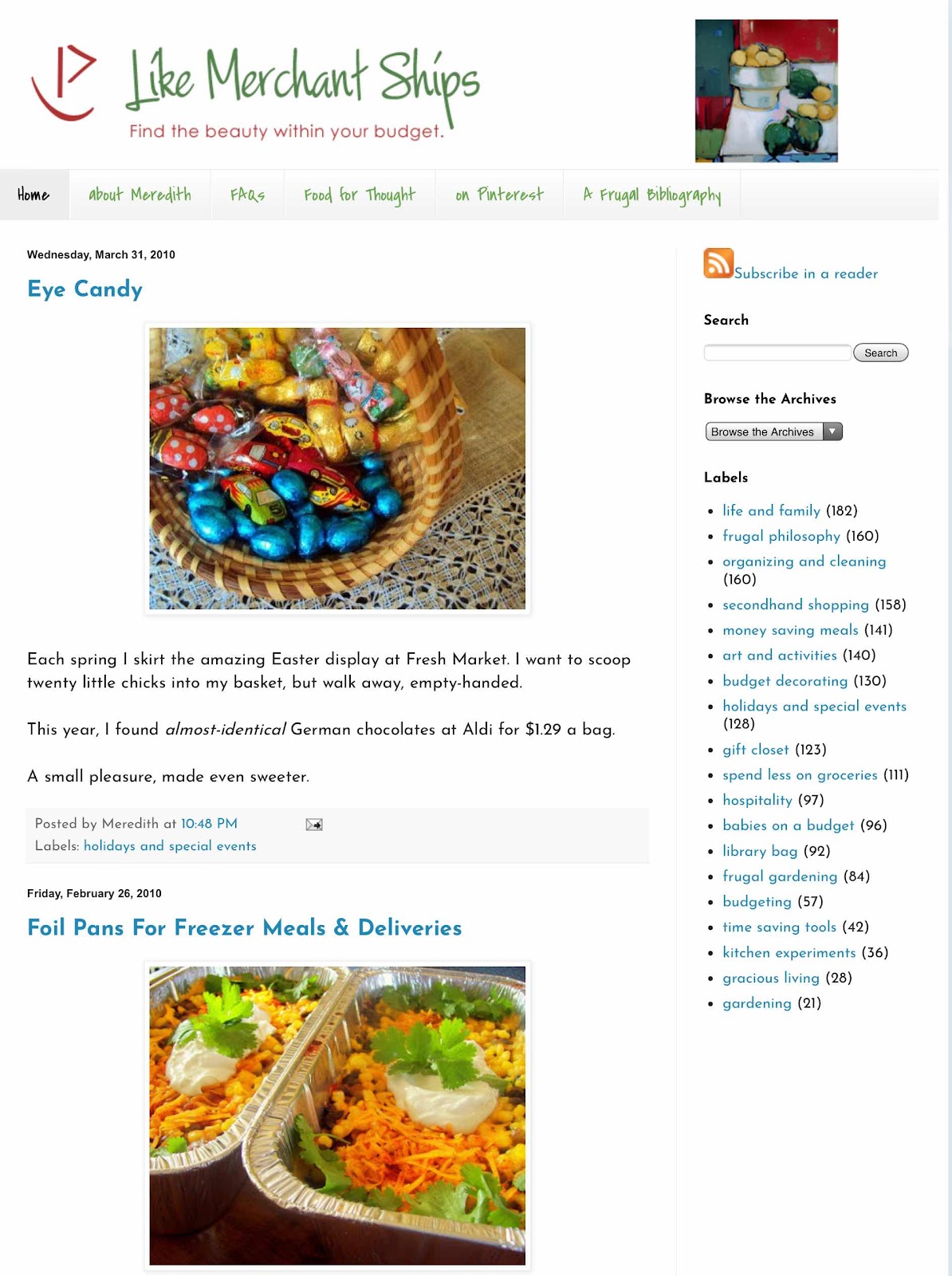 Like Merchant Ships was one of the first blogs I ever read. Meridith was the author and she published between 2005-2010. She lived a very frugal life and did it with much beauty and class.