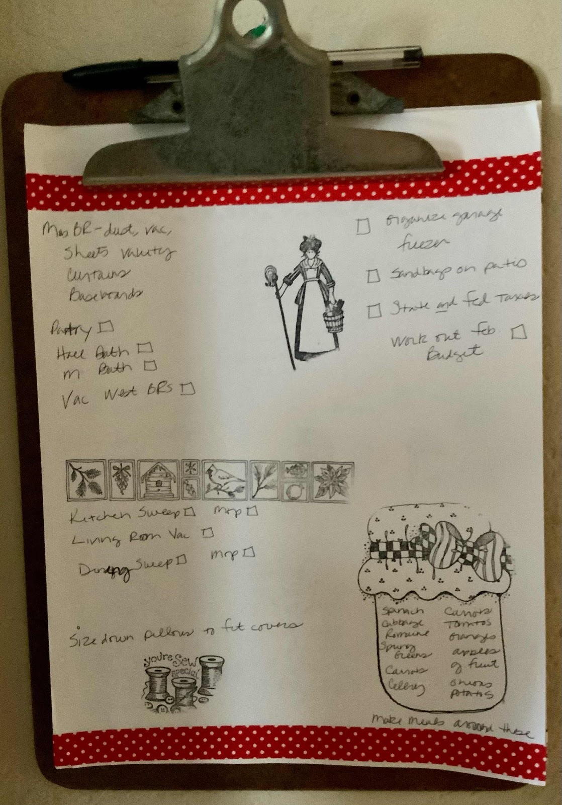 DeleteI tried using planners but didn’t like having one open on the counter. My kitchen has a little wall space by a pantry and the clipboard hanging there with my list just works for me.