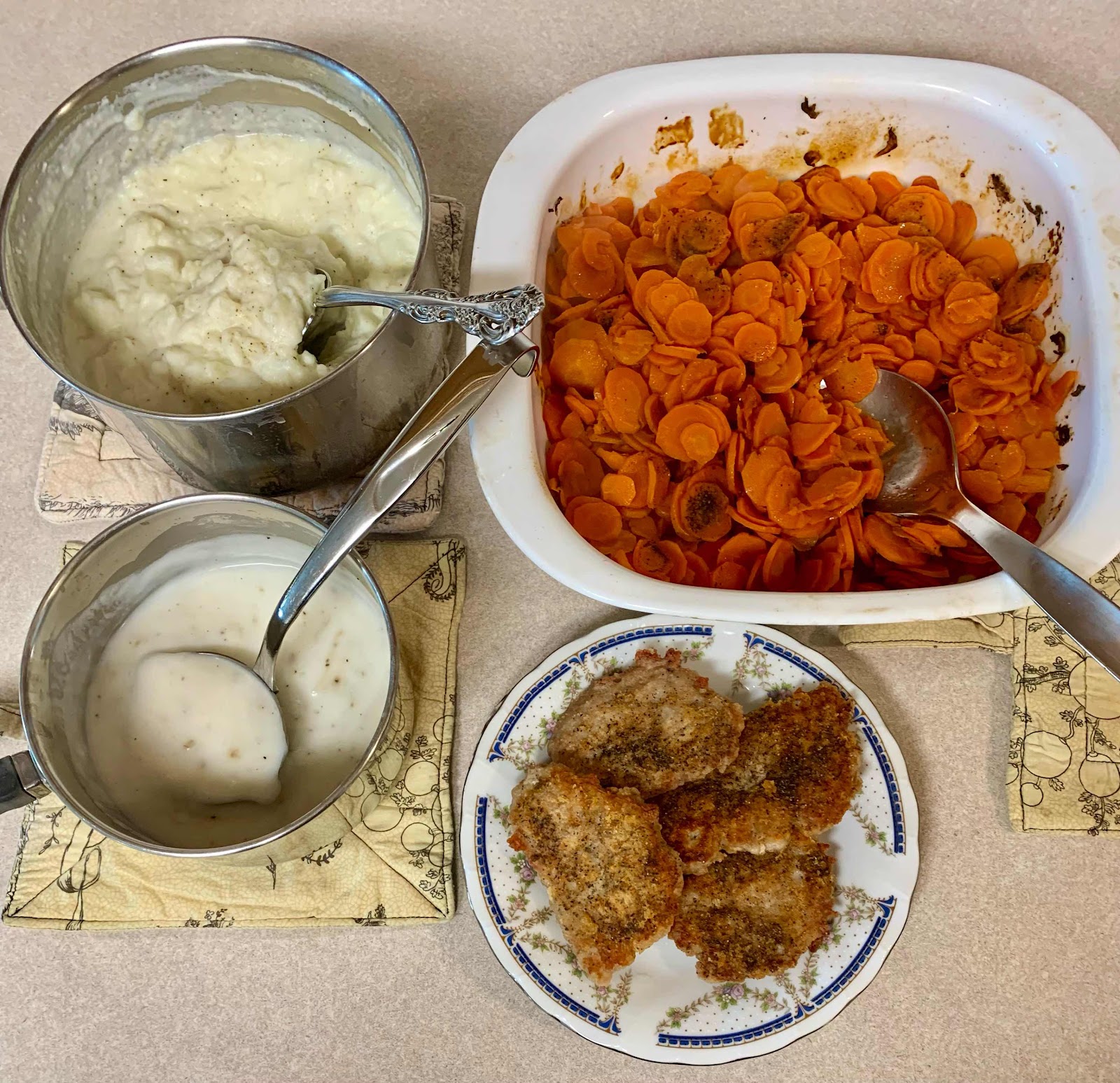 I also baked that big pan of sliced carrots, made some mashed potatoes and a mix white gravy.