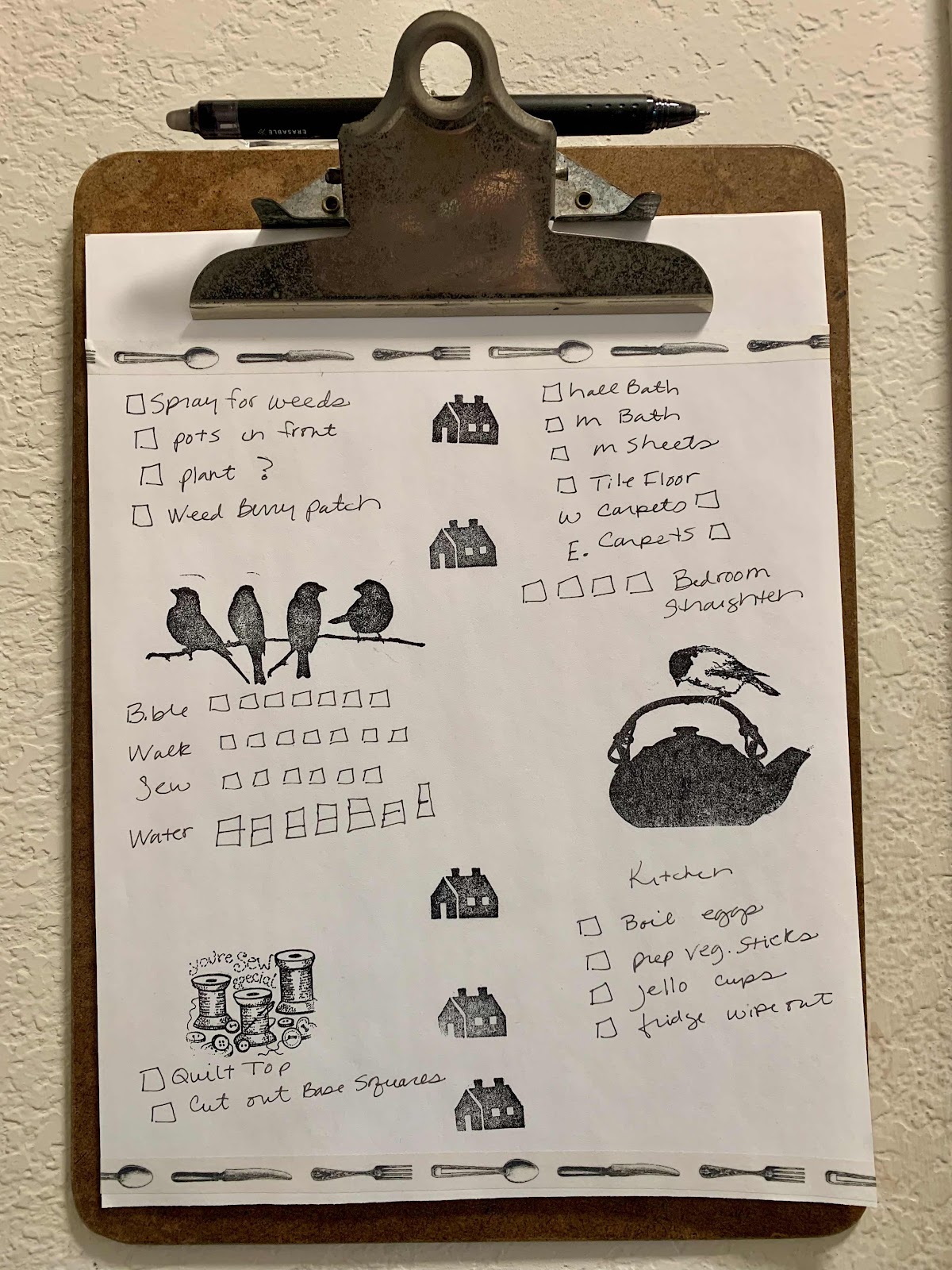 I’ve tried a couple other methods but this hand written list on a clipboard works best for me.
