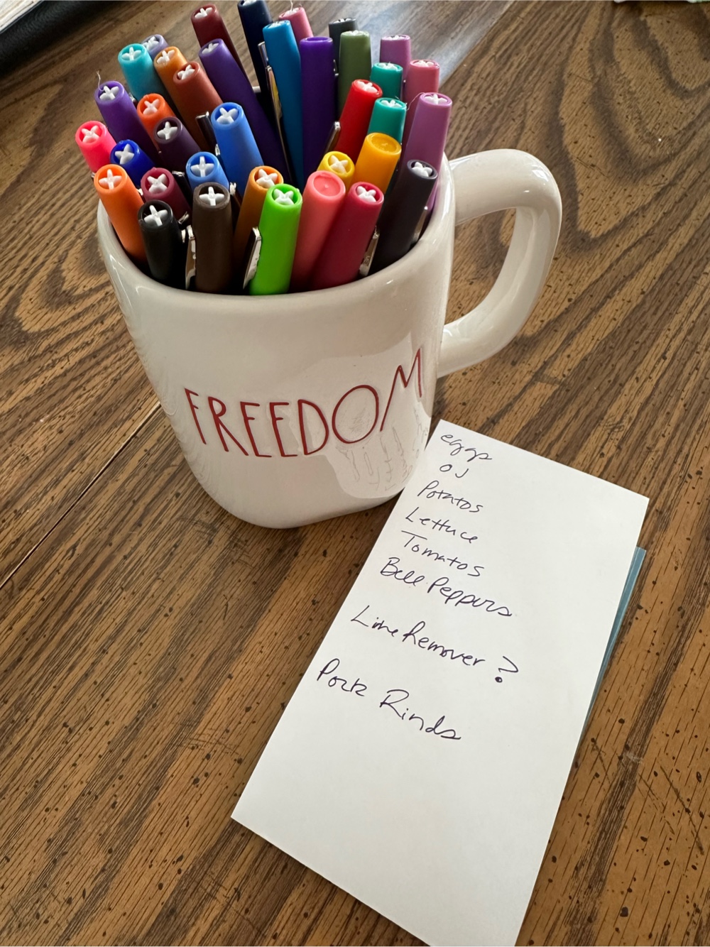I separated them and put each one on a piece of pretty paper. I also put our freezer inventory On some pretty paper.